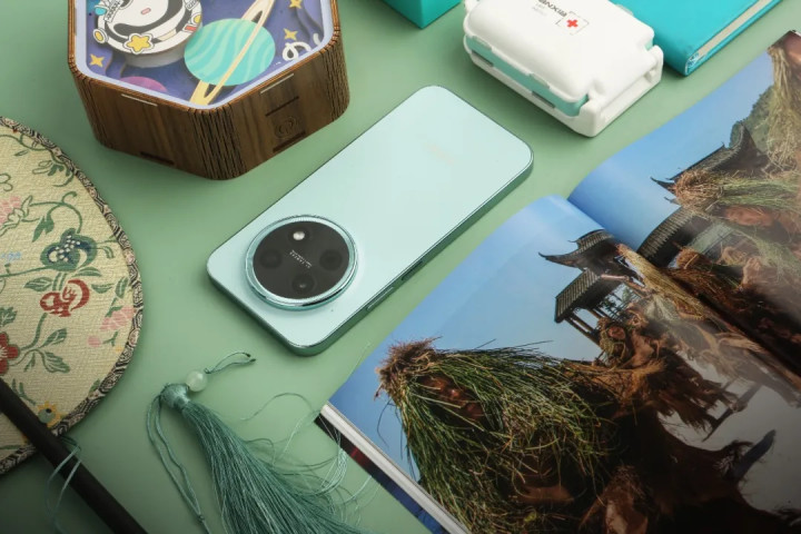 咱们手上这款华为畅享90 Pro Max配色为飞天青,整块背板由秀色可餐的嫩绿色包裹。而且,每一个角度看去,都有无数“小星星”对着你闪闪发光,那遮拦不住的光亮灵动廓清,恰似年青群体散逸的茁壮活力。