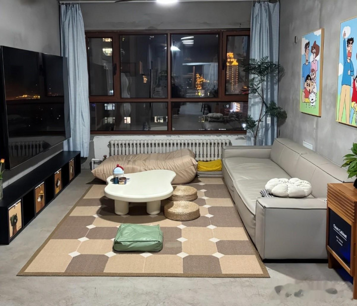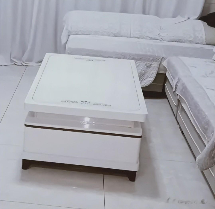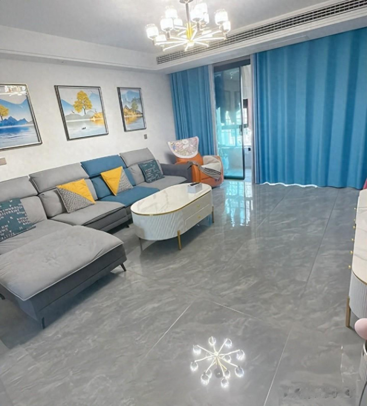 我回家看到这样的场景都懵了,蓝本客厅都是很大的一个空间,放上了超大茶几后占据了大部分的空间。