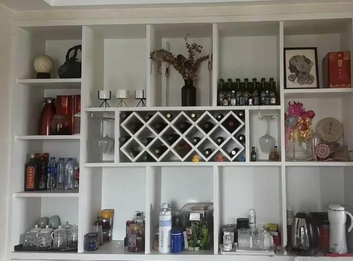 在餐边柜去作念一个酒柜之后,在上头放上名酒、遮挡品等等,果真高等许多。